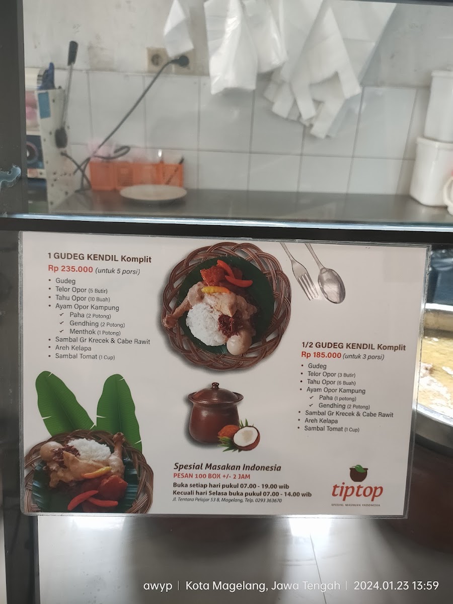 Welcome to Rumah Makan Tip Top, an iconic treasure nestled in the heart of Magelang, Indonesia. This renowned Indonesian restaurant, located at Jl. Tentara Pelajar No.53B, offers an inviting menu that blends traditional flavors with a cozy atmosphere, perfect for breakfast or a quick bite any day of the week.