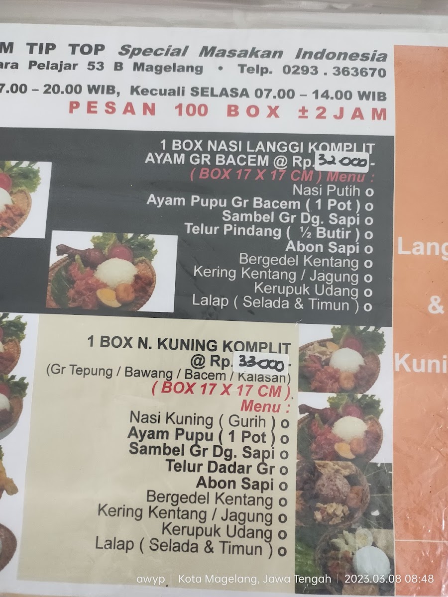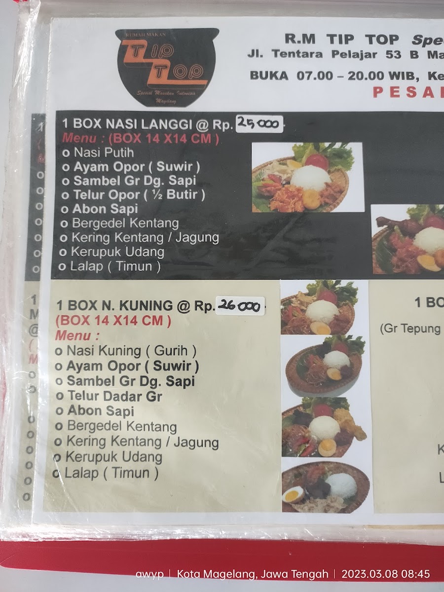 Rumah Makan Tip Top Menu